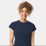 Gildan Ladies 4.5 Ounce Softstyle T-Shirt. Side seamed with fitted silhouette, fashionable 1/2 collarette. Heathers contain 35% cotton/65% polyester. Antique colors and RS Sport Grey are 90/10 cotton/polyester.