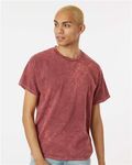 Dyenomite Adult 5.3 Ounce Mineral Wash T-Shirt. 5.3 ounces. 100% cotton with double-needle stitched neckline & bottom hem. Shoulder-to-shoulder taping. Tear away label.